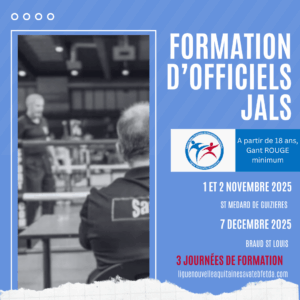 La formation Juge Arbitre de Ligue aura lieu les 1 et 2 Novembre 2025 à St Médard de guizières et le 7 décembre 2025 à Braud St Louis. inscriptions :