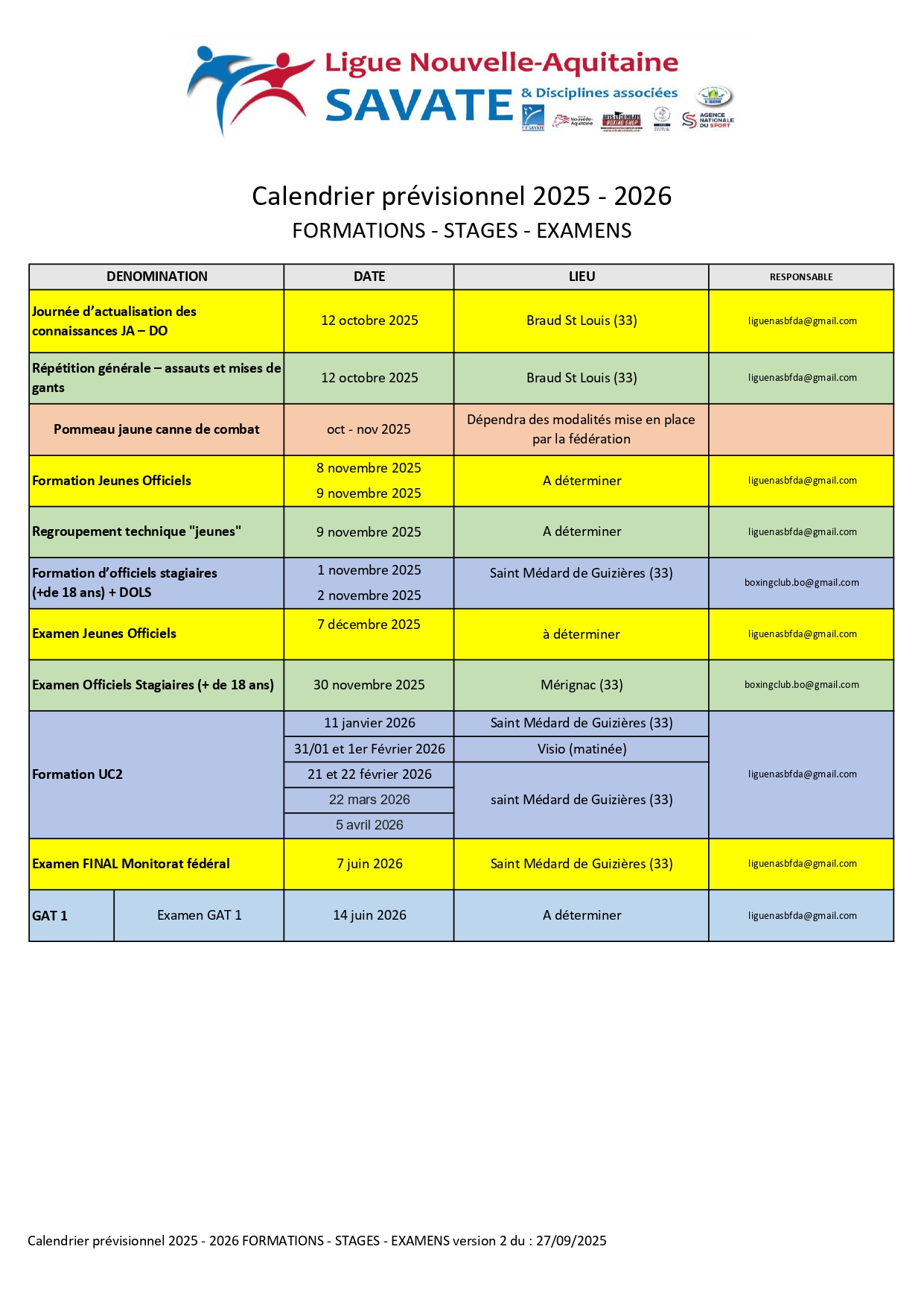 Voici le calendrier des formation et stages de la ligue N-A 2025-2026 :