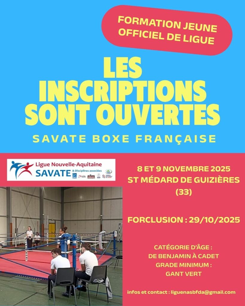 Une formation « Jeune Officiel(le)» aura lieu les 8 et 9 Novembre 2025 à St Médard de Guizières (33)