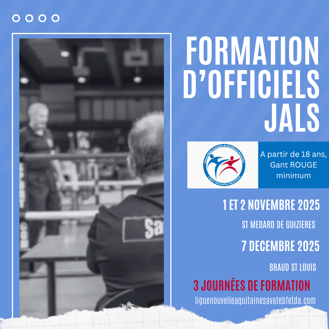 La formation Juge Arbitre de Ligue aura lieu les 1 et 2 Novembre 2025 à St Médard de guizières et le 7 décembre 2025 à Braud St Louis.